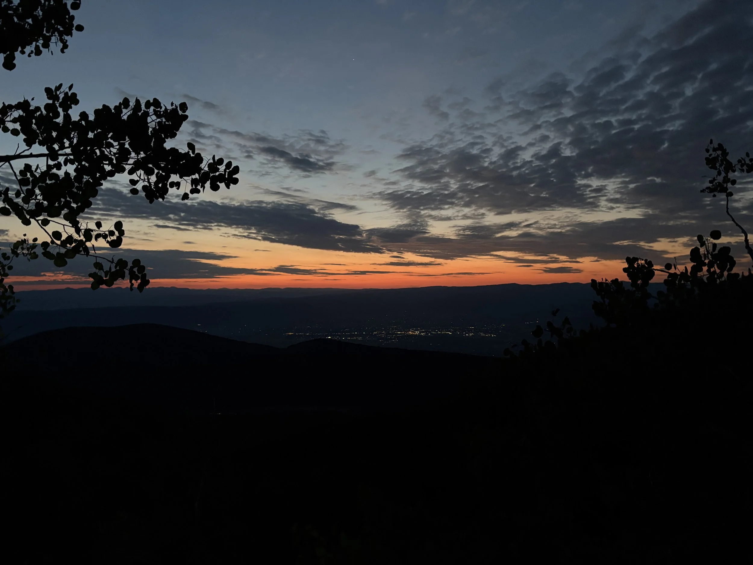 Running along the ridge you could see down into the valley towards Brighton which looked quite far away but only one way to get there. “One foot in front of the other” I told myself. I took a picture here looking towards Brighton and texted the crew “on my way!” I think there was about 4 miles to go which didn’t sound far but the time it took felt like a long time. My perception of time was so skewed out there. 1 hour felt like 20 minutes. After a long descent into Brighton I was greeted by Tim and Ethan with cameras where they took me to a tent and sat me down, swapped vests did some quick foot care, downed some tasty ramen and more watermelon of course, I also took my first caffeinated gel here before taking Elizabeth with me up the trail. It was about midnight when I left Brighton and 19 hours into the race. It felt so good to see the crew and only have one more section to go before the finish. Yes it was 30 miles with a few aid stations but it didn’t feel that long after 70 miles under the legs already mentally at least, the body had other plans. This was a huge boost of energy for me that I held on to for about 2 hours then got tired and sleepy again. The sunrise couldn’t come any sooner. I knew I wouldn’t feel as tired when the sun rose again but it felt like an eternity. Elizabeth kept lying to me about when the sun was coming up which I was still lucid enough to know that it wasn’t right. But this is why a good pacer is so helpful to give you little boosts of motivation to keep going. I swear every 10 minutes she would remind me to take a gel but later on she told me it was every 30-40 minutes! Time was just going by so fast. I had asked her to get me to take a gel every 30 minutes when we first set off from Brighton and that’s what she was doing for me. Keeping me on track with fueling was the biggest thing I wanted from my pacer. It was also super nice for moral support since later on in the night or in the wee hours of the morning I was so done and didn’t want to continue on anymore.